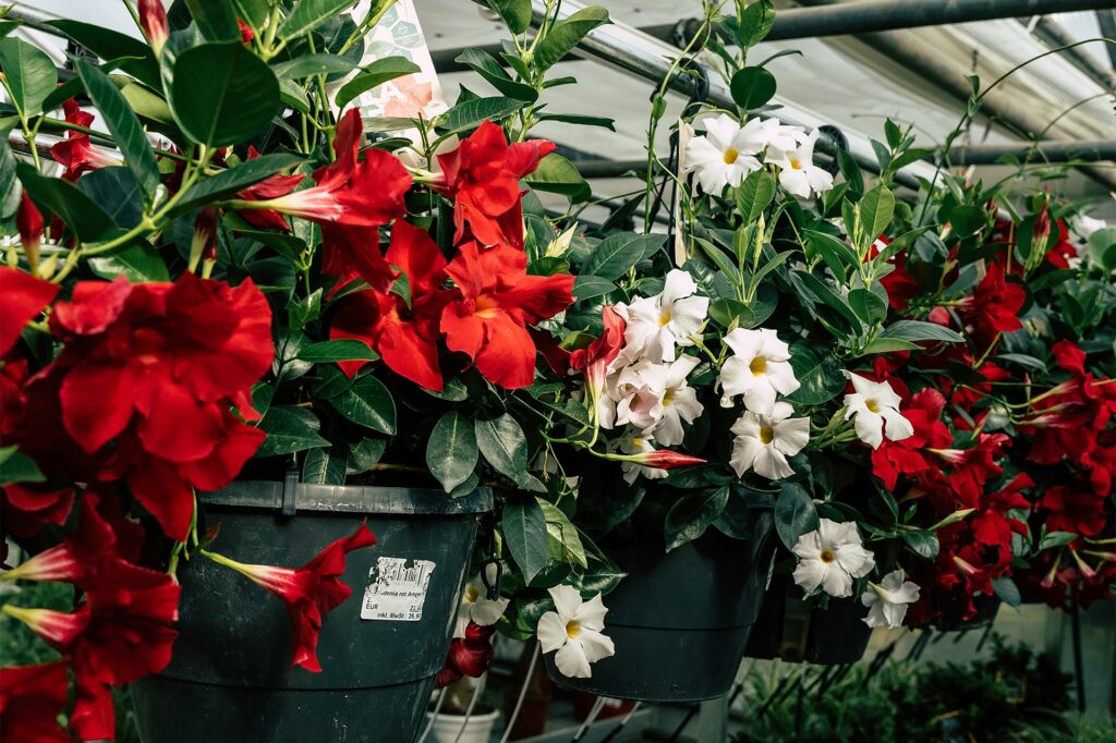 Üppige Blüten und elegante Hängeform: Unsere Dipladenia-Ampeln bringen Farbe auf Balkon und Terrasse.
